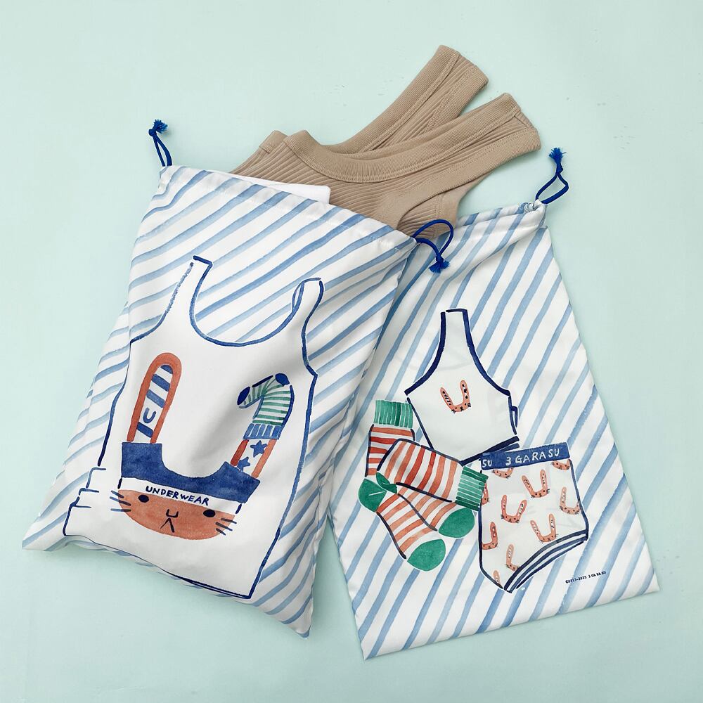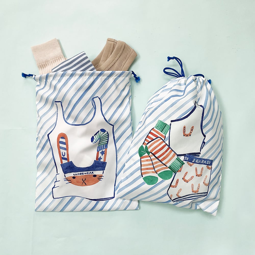 タンクトップのイラストが目を引き、どんなシーンでも楽しい気分にさせてくれます。下着を持ち運ぶだけでなく、小物入れやちょっとしたギフトとしても喜ばれるアイテムです。