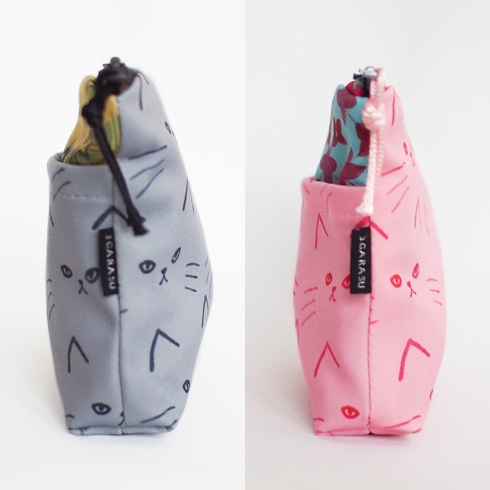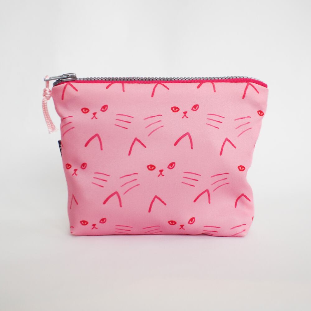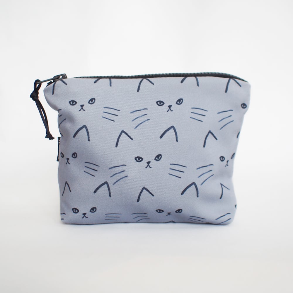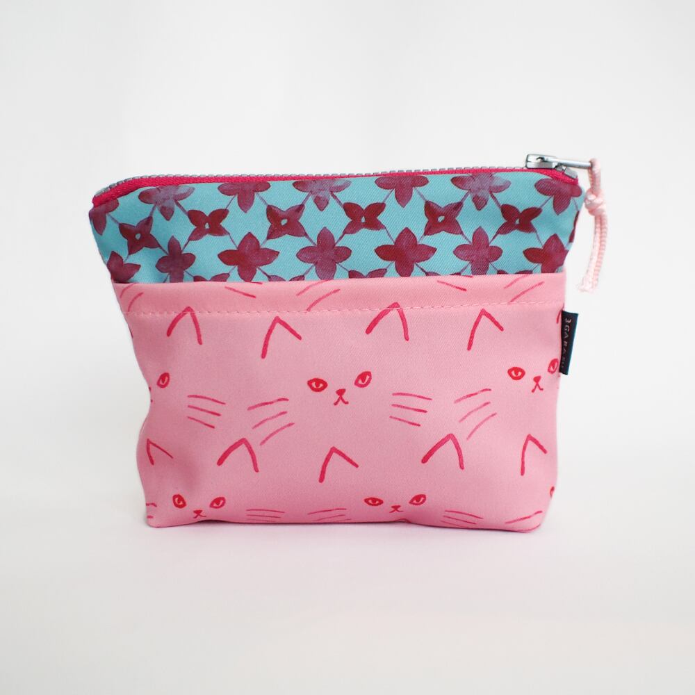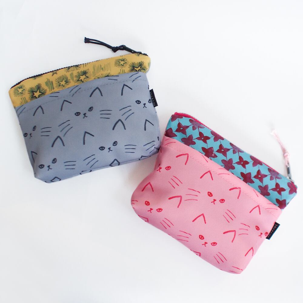 猫の顔が並んだテキスタイルポーチは、見るたびに癒されますよね。