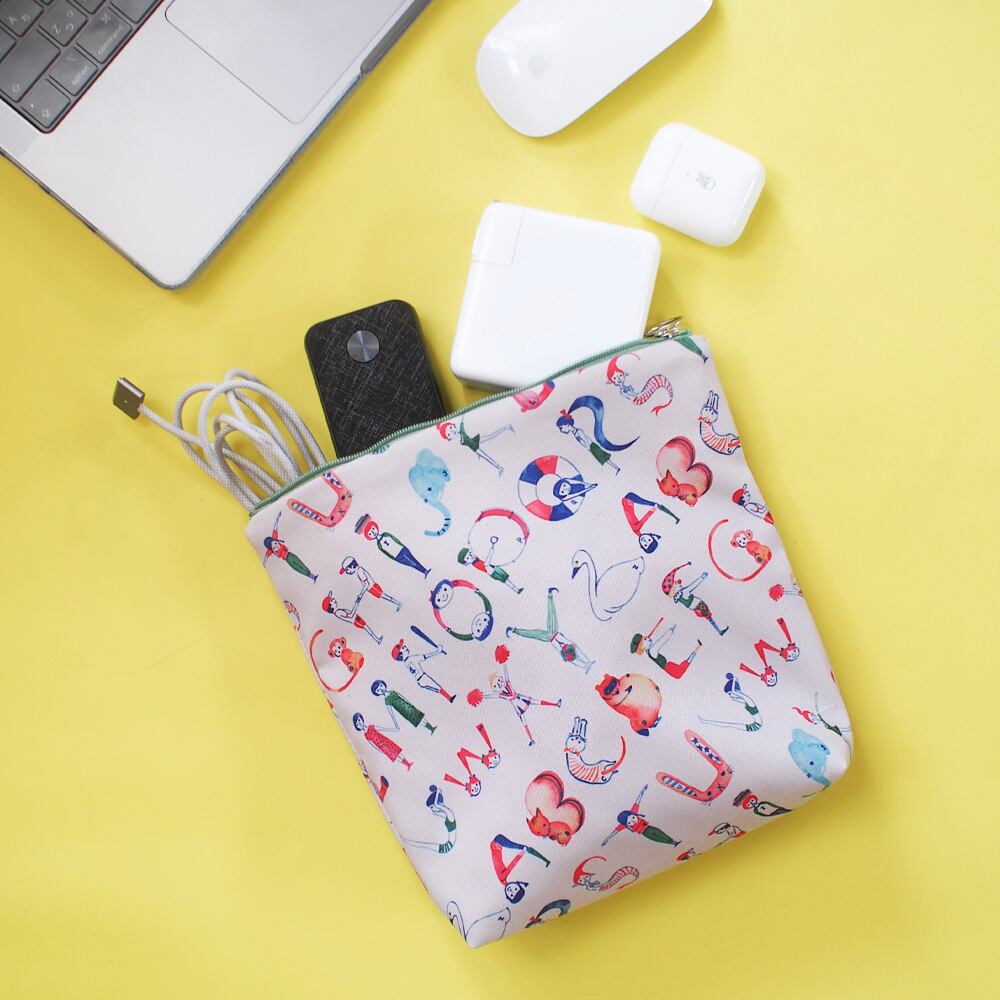 水彩イラストのプリントが優しいABCシリーズのアルファベット柄をプリントしたガジェットポーチ