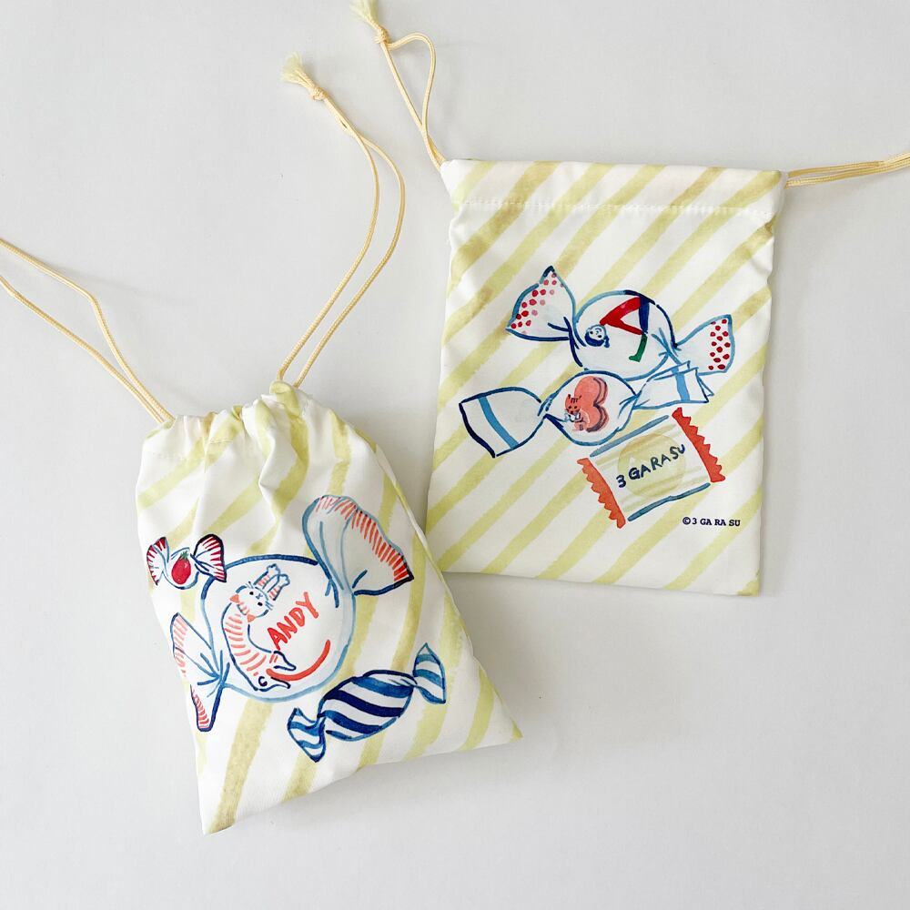 甘いキャンディのイラストが目を引く、可愛らしい撥水ミニ巾着です。